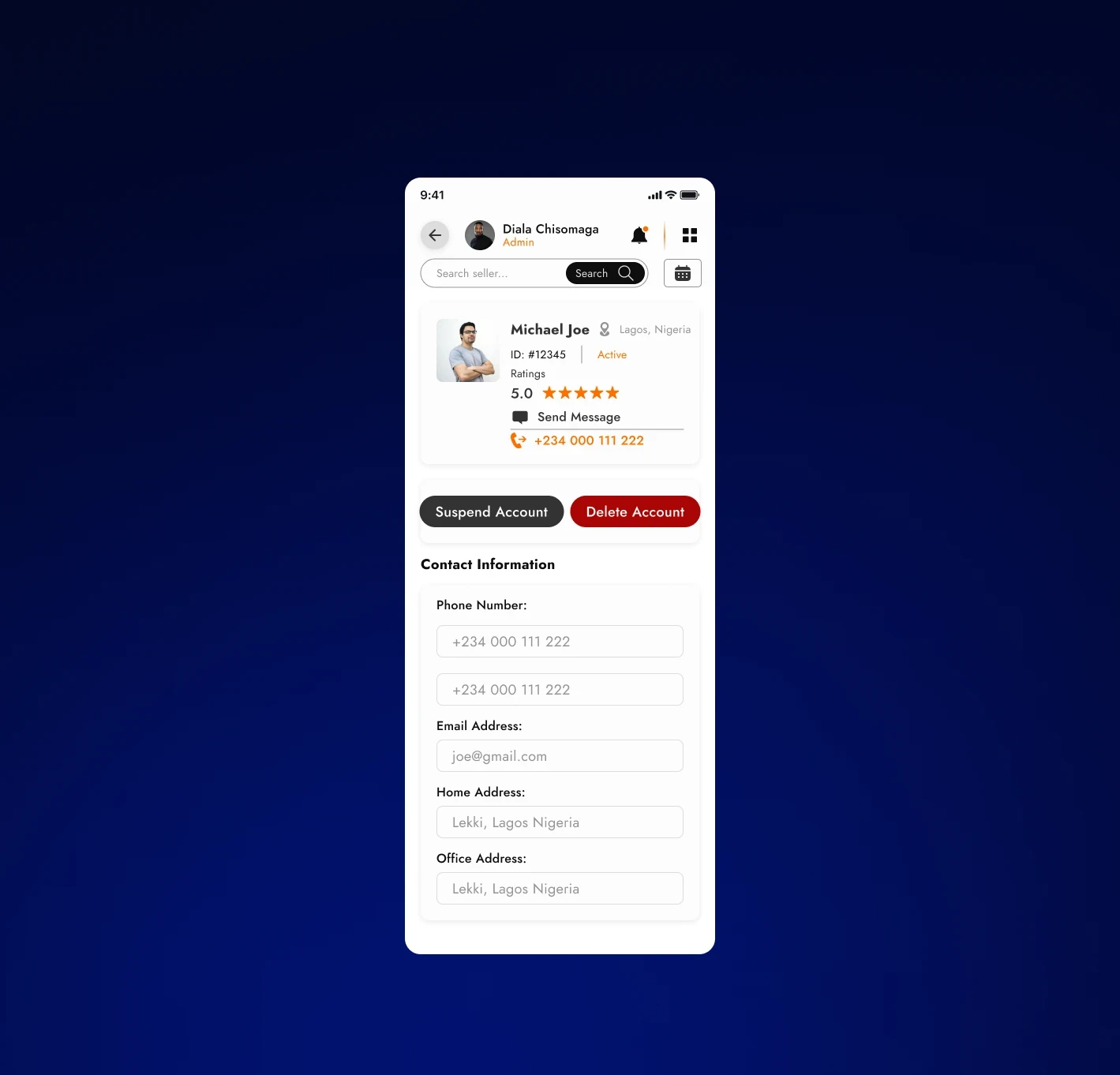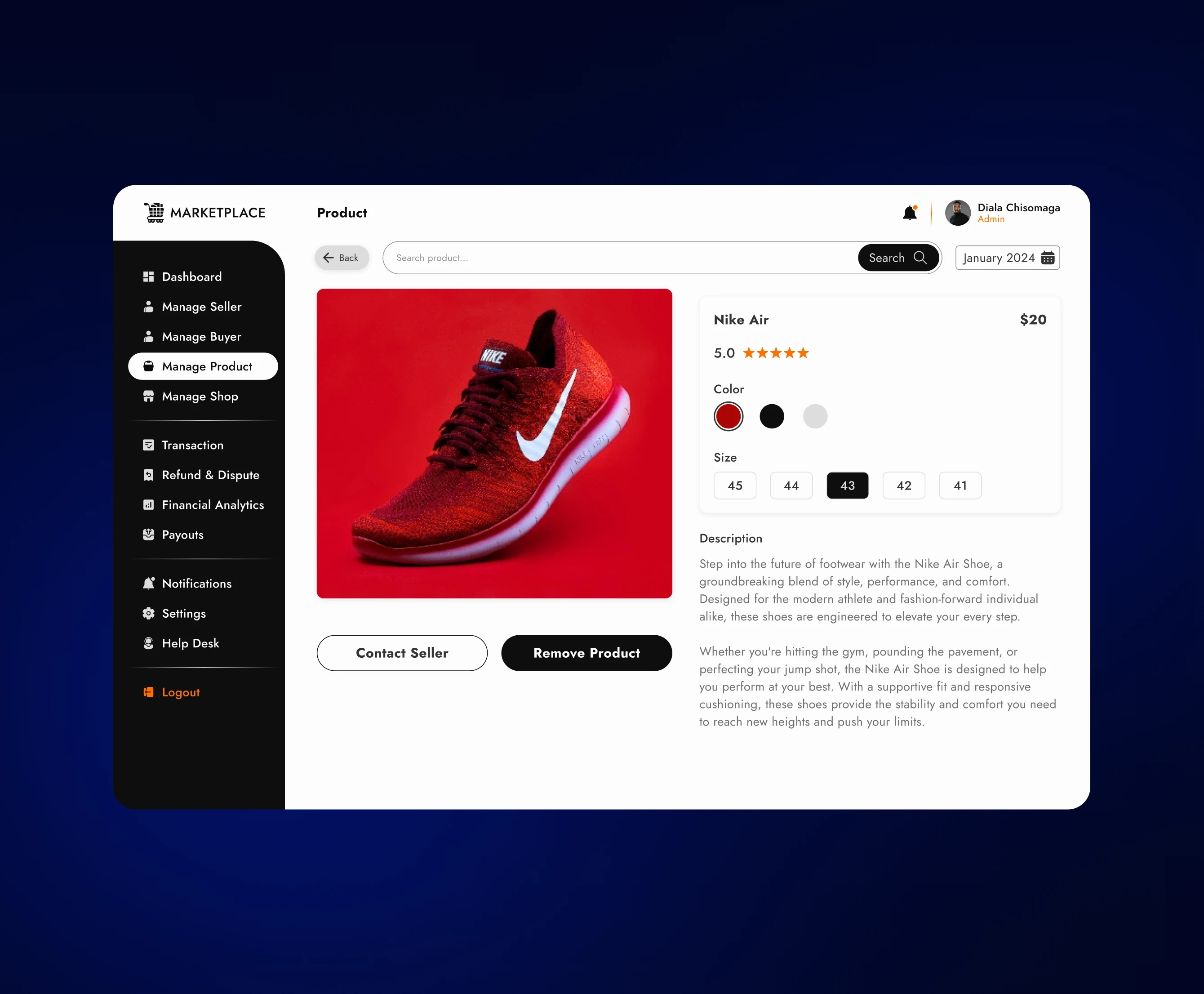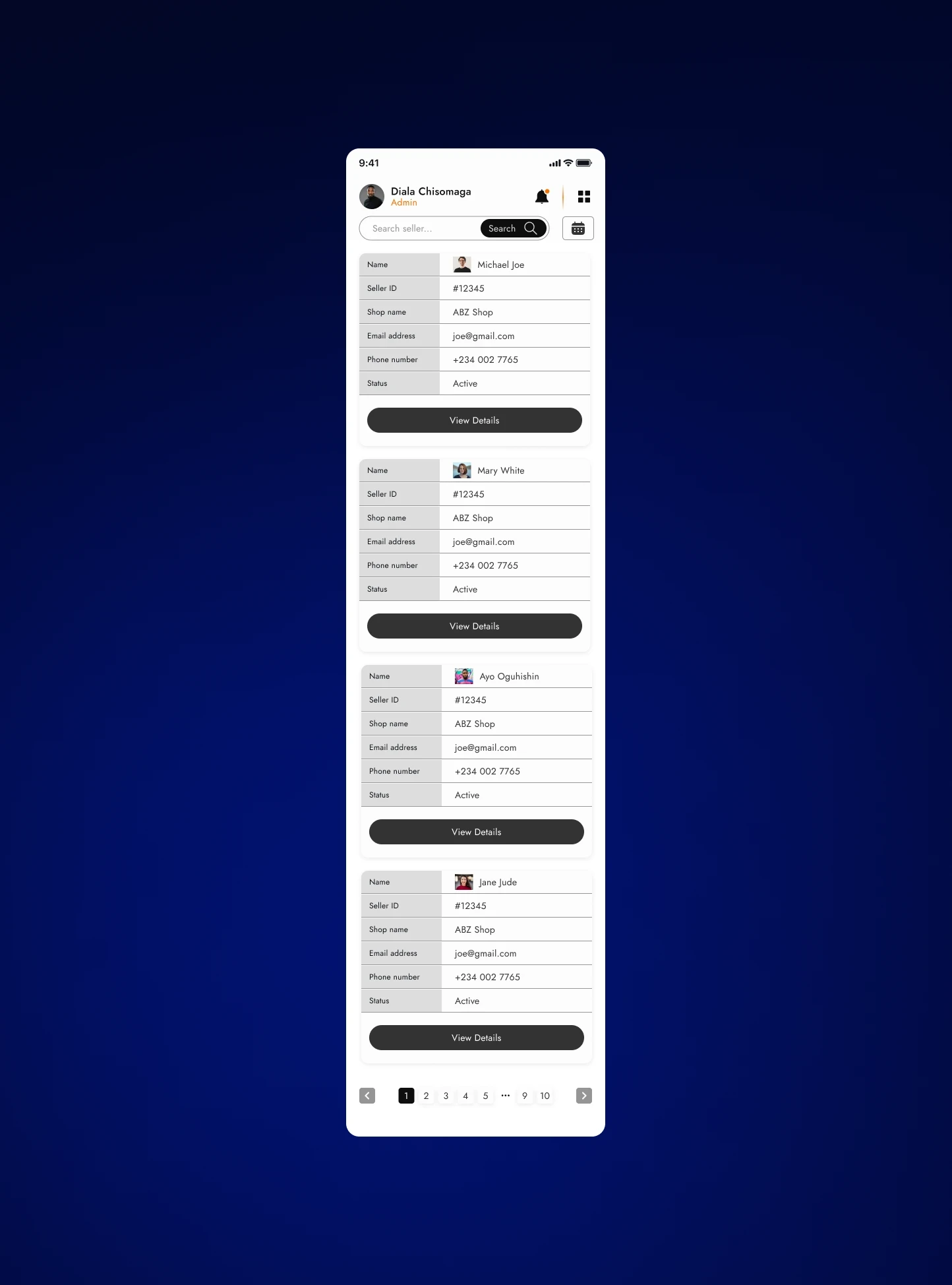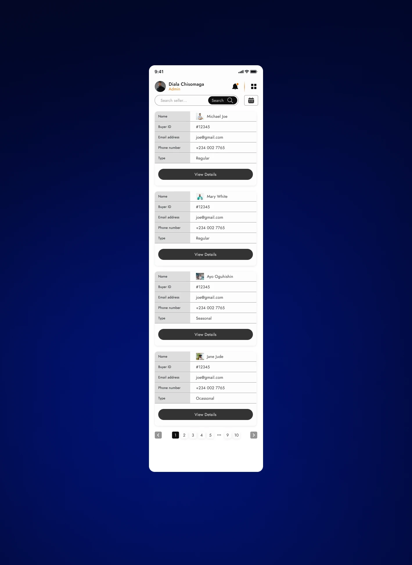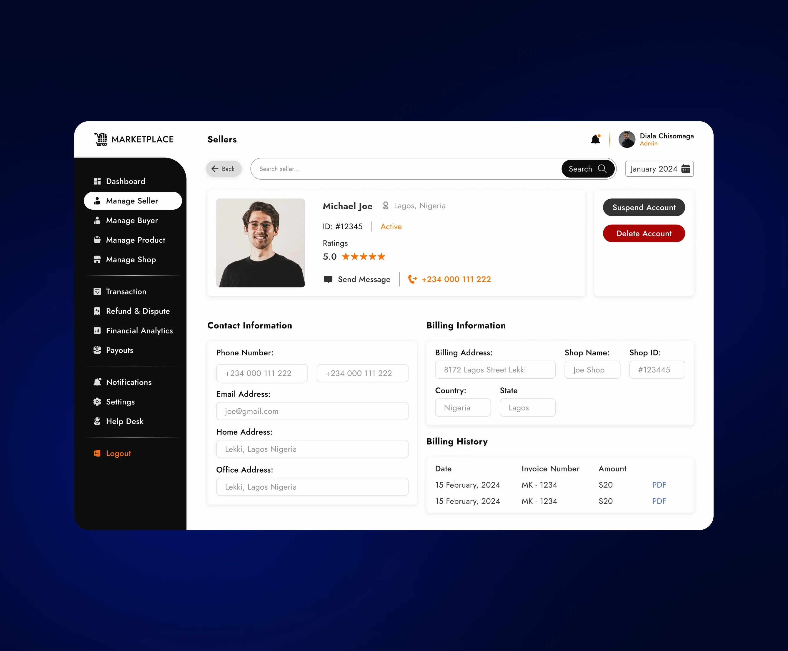 🛍️ Seller & Buyer Management: Monitor and manage seller accounts, buyer profiles, and user interactions with detailed insights and control settings.