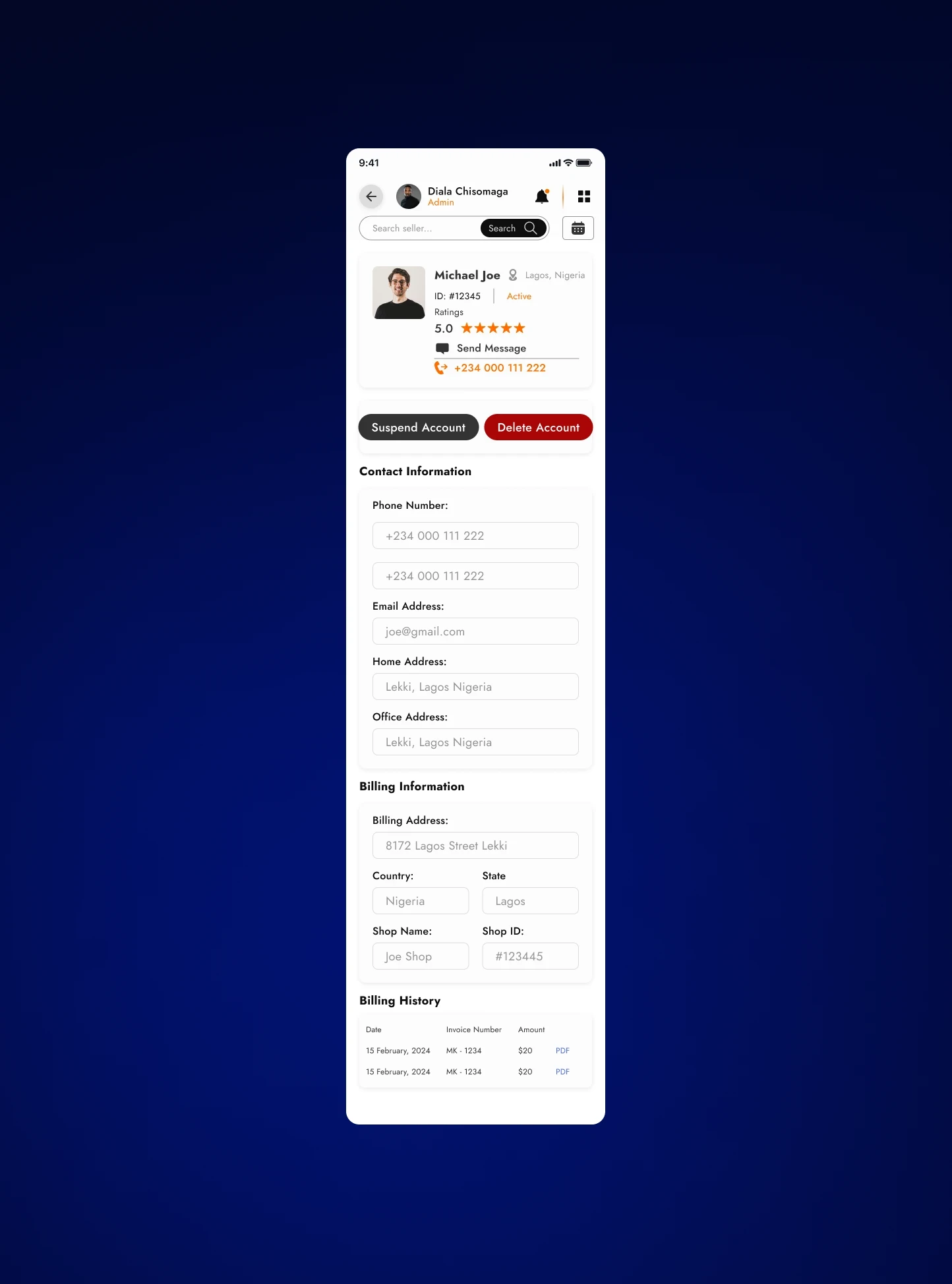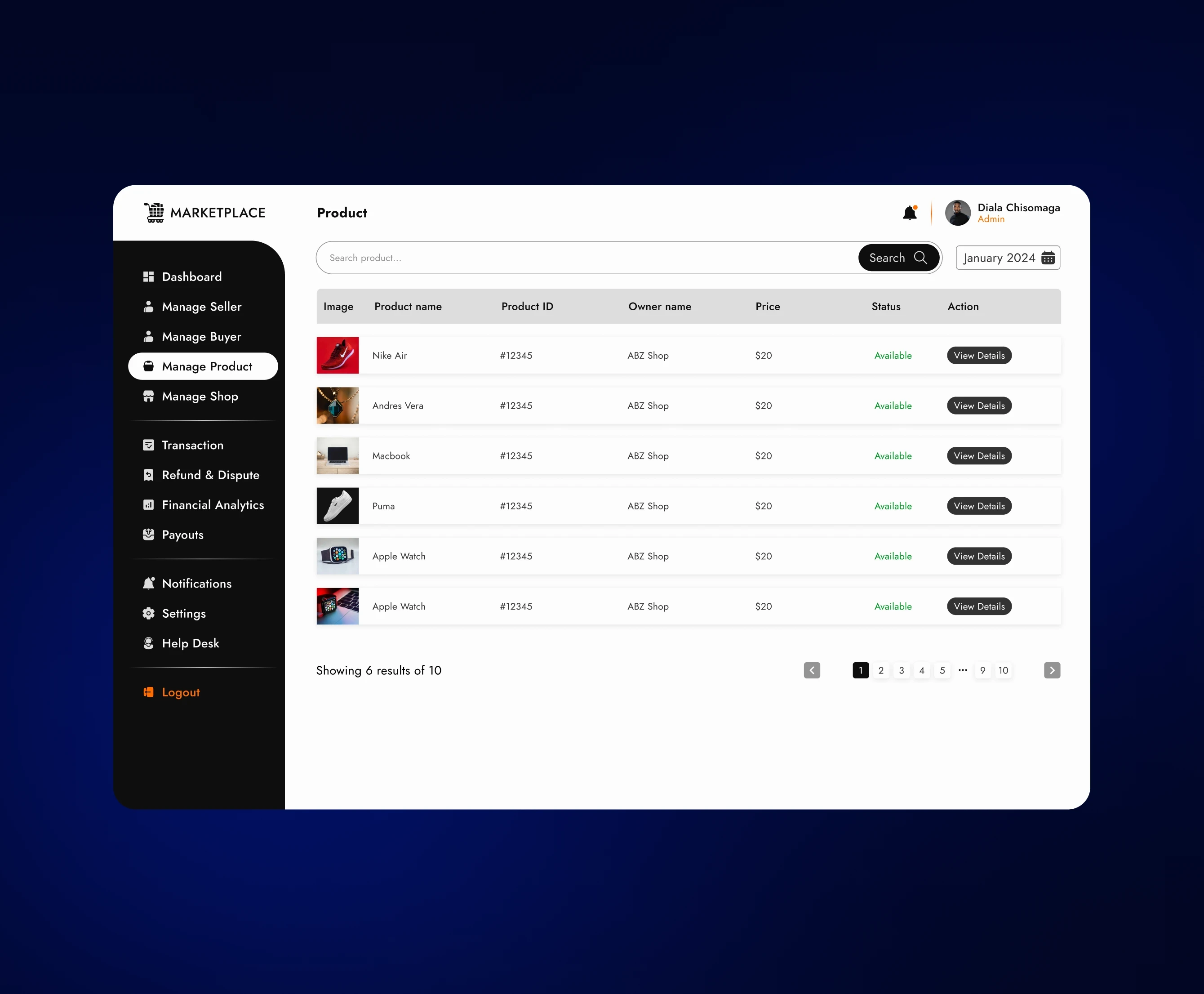 📦 Product & Shop Oversight: Easily review, approve, or modify product listings and manage shop performance to maintain marketplace quality and compliance.