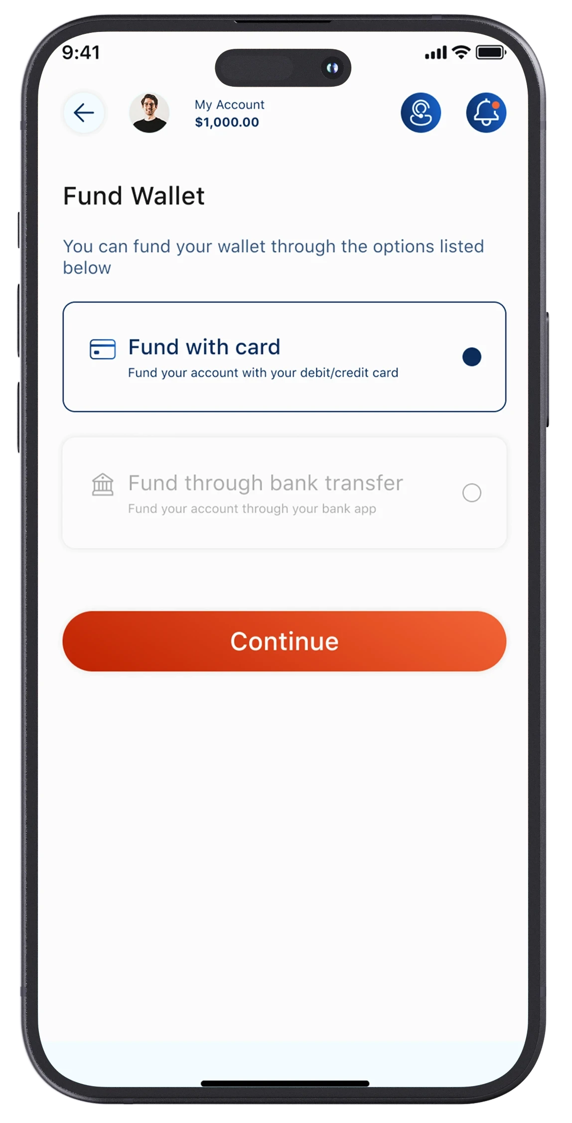 Wallet/Funding wallet screen